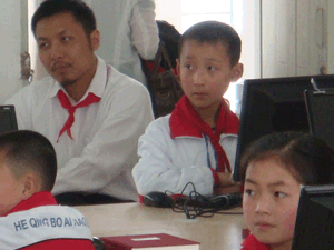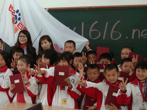 启动仪式后,由1616导航公司的杨文欣女士和歌星孙悦,分别为孩子们在新教室上了第一堂电脑课和音乐课。